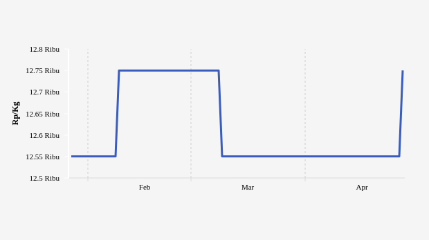 Harga beras kualitas medium I di Kalimantan Utara dijual dengan harga Rp 12.750 per kg pada Rabu, 27 April 2022. Dibandingkan wilayah lain, perubahan harga di wilayah ini merupakan yang tertinggi dalam sepekan terakhir.