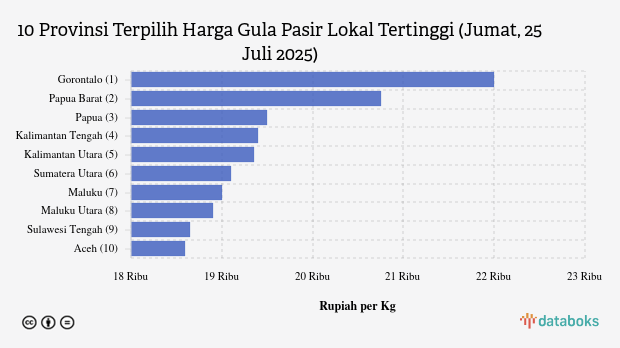 Harga Gula Pasir Lokal di 10 Provinsi Ini Paling Mahal (Jumat, 25 Juli 2025)