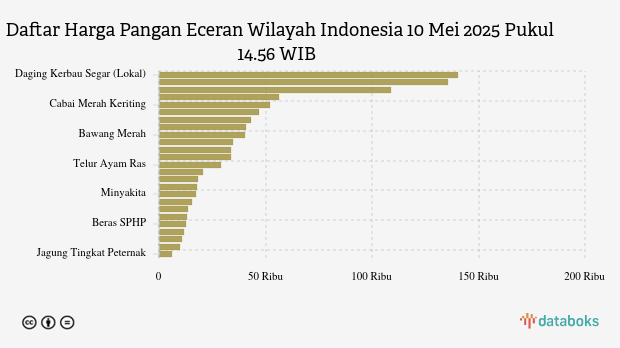 Berikut daftar lengkap harga 25 bahan pangan di Indonesia menurut Bapanas 10 Mei 2025 pukul 14.56 WIB.