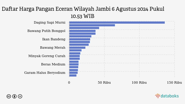 Berikut daftar lengkap harga 20 bahan pangan di Jambi menurut Bapanas 6 Agustus 2024 pukul 10.53 WIB.