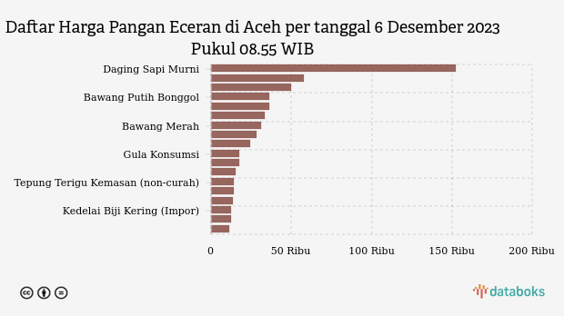 Berikut daftar lengkap harga 18 bahan pangan di Aceh menurut Bapanas per tanggal 6 Desember 2023 pukul 08.55 WIB.