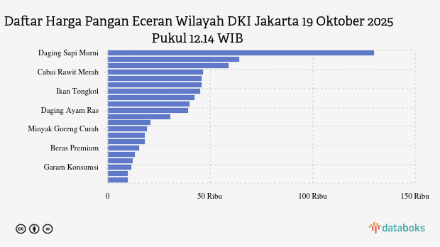 Berikut daftar lengkap harga 21 bahan pangan di DKI Jakarta menurut Bapanas 19 Oktober 2025 pukul 12.14 WIB.