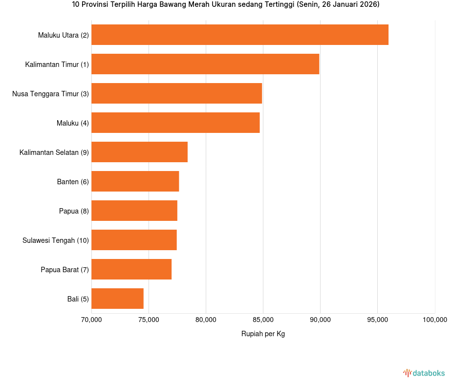 24. Bawang Merah Ukuran Sedang per Kg Rp61,25 ribu per kg (naik 15.68%)