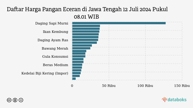 Berikut daftar lengkap harga 21 bahan pangan di Jawa Tengah menurut Bapanas 12 Juli 2024 pukul 08.01 WIB.
