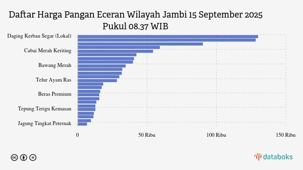 Berikut daftar lengkap harga 25 bahan pangan di Jambi menurut Bapanas 15 September 2025 pukul 08.37 WIB.
