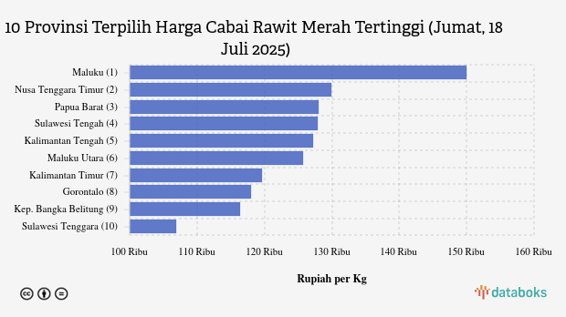 Harga Cabai Rawit Merah di Maluku Rp.150 Ribu per Kg (Jumat, 18 Juli 2025)