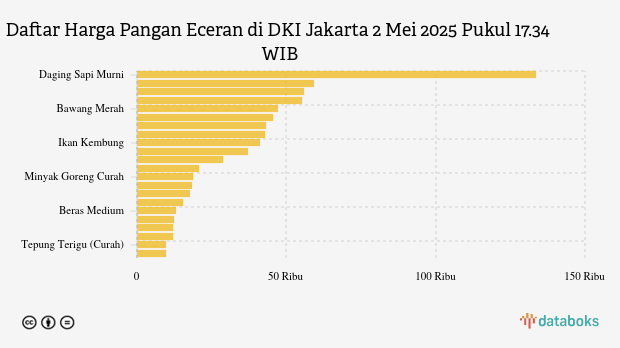 Berikut daftar lengkap harga 22 bahan pangan di DKI Jakarta menurut Bapanas 2 Mei 2025 pukul 17.34 WIB.