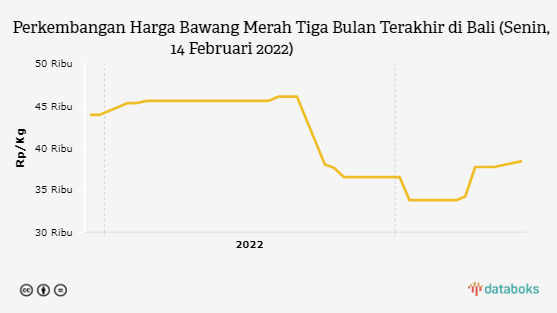 Untuk periode Januari-Februari 2022, harga bawang merah di pasar modern mengalami tren penurunan, bergerak -15,21% dibandingkan kondisi sebulan yang lalu