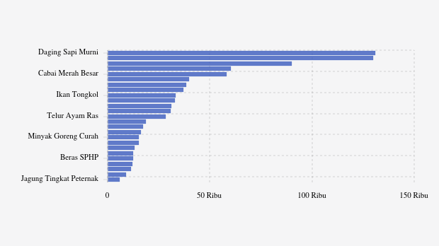 - Gula Konsumsi: Rp17.404 per kg (turun 0,27%)