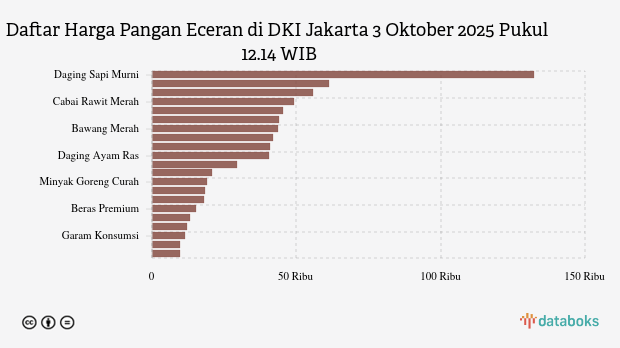 Berikut daftar lengkap harga 21 bahan pangan di DKI Jakarta menurut Bapanas 3 Oktober 2025 pukul 12.14 WIB.