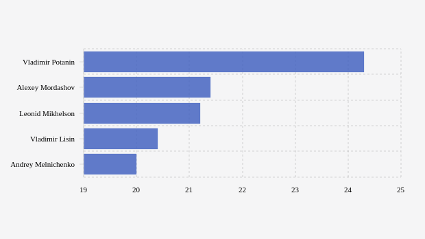 Rusia menjadi salah satu negara yang banyak memiliki pengusaha dengan harta miliaran dollar. Kekayaan tersebut didapatkan dari sejumlah industri yang dilakoni seperti pertambangan.