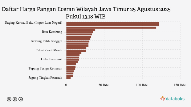 Berikut daftar lengkap harga 25 bahan pangan di Jawa Timur menurut Bapanas 25 Agustus 2025 pukul 13.18 WIB.