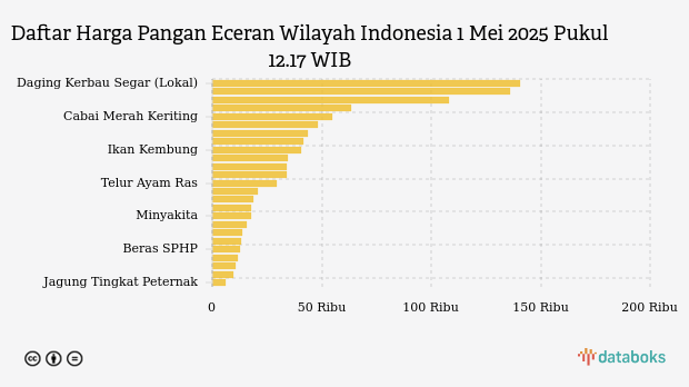 Harga Pangan Kamis (1/5) Wilayah Indonesia: Daging Kerbau Naik, Cabai Rawit Turun