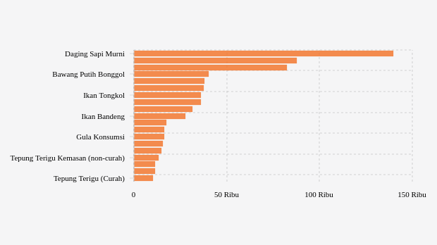 - Gula Konsumsi: Rp16.300 per kg (turun 0,55%)