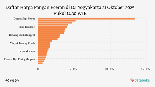 Berikut daftar lengkap harga 23 bahan pangan di D.I Yogyakarta menurut Bapanas 21 Oktober 2025 pukul 14.30 WIB.