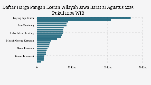 Berikut daftar lengkap harga 24 bahan pangan di Jawa Barat menurut Bapanas 21 Agustus 2025 pukul 12.08 WIB.