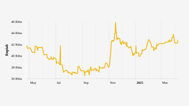 Sedangkan harga bawang putih ukuran sedang harian di pasar tradisional dalam tiga bulan terakhir di Kalimantan Barat terlihat turun 8,07%. Menurut catatan historis harga pangan di panel harga PIHPS, harga bawang putih ukuran sedang harian di pasar tradisional provinsi Kalimantan Barat diperdagangkan di harga Rp41,5 ribu.