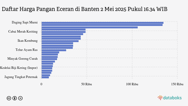 Berikut daftar lengkap harga 25 bahan pangan di Banten menurut Bapanas 2 Mei 2025 pukul 16.34 WIB.