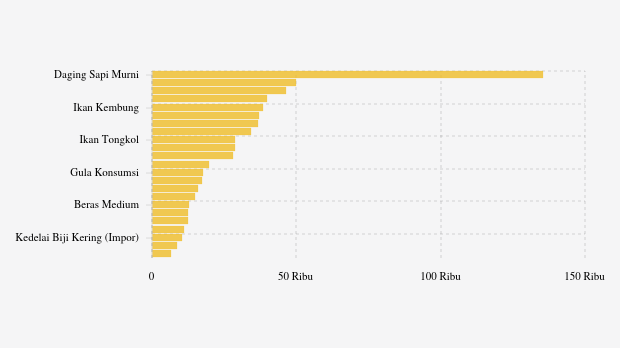 - Gula Konsumsi: Rp17.569 per kg (naik 0,13%)