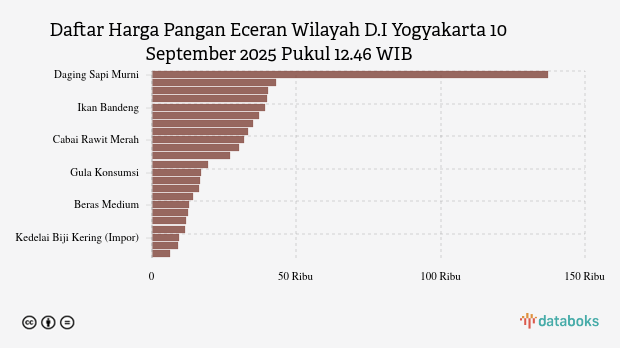 Berikut daftar lengkap harga 23 bahan pangan di D.I Yogyakarta menurut Bapanas 10 September 2025 pukul 12.46 WIB.