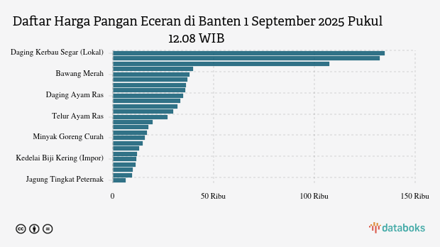 Berikut daftar lengkap harga 25 bahan pangan di Banten menurut Bapanas 1 September 2025 pukul 12.08 WIB.