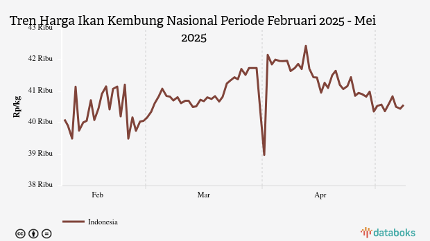 Selama periode Februari 2025 - Mei 2025, rata-rata harga ikan kembung terendah Rp39.495 per kg pada Minggu, 9 Februari 2025. Adapun harga tertinggi mencapai Rp42.136 per kg pada Rabu, 2 April 2025.