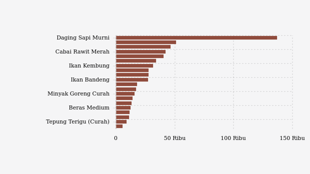 1. Daging Sapi Murni: Rp136.650 per kg (turun 0,24%)