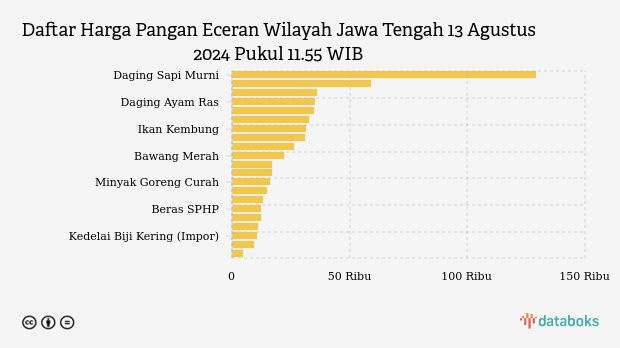 Berikut daftar lengkap harga 21 bahan pangan di Jawa Tengah menurut Bapanas 13 Agustus 2024 pukul 11.55 WIB.