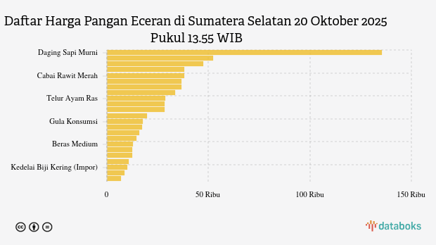 Berikut daftar lengkap harga 23 bahan pangan di Sumatera Selatan menurut Bapanas 20 Oktober 2025 pukul 13.55 WIB.