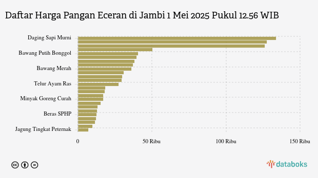 Berikut daftar lengkap harga 25 bahan pangan di Jambi menurut Bapanas 1 Mei 2025 pukul 12.56 WIB.