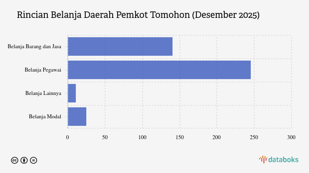 Pada Januari 2026, realisasi Belanja Daerah Pemkot Tomohon mencapai Rp421,05 miliar atau setara 59,56% dari anggaran Belanja Daerah 2025.