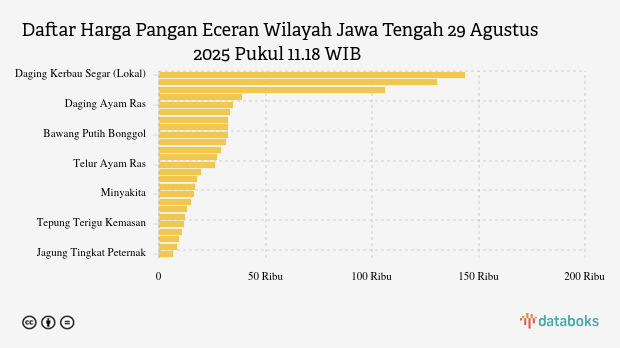Berikut daftar lengkap harga 25 bahan pangan di Jawa Tengah menurut Bapanas 29 Agustus 2025 pukul 11.18 WIB.