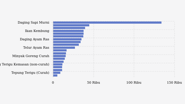 - Gula Konsumsi: Rp16.700 per kg (turun 0,89%)