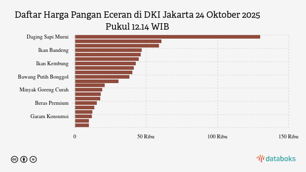Berikut daftar lengkap harga 21 bahan pangan di DKI Jakarta menurut Bapanas 24 Oktober 2025 pukul 12.14 WIB.