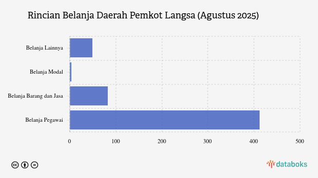 Selama periode Januari 2025 hingga Agustus 2025, realisasi Belanja Daerah Pemkot Langsa sebesar Rp547,37 miliar atau setara 59,56% dari anggaran Belanja Daerah 2025.