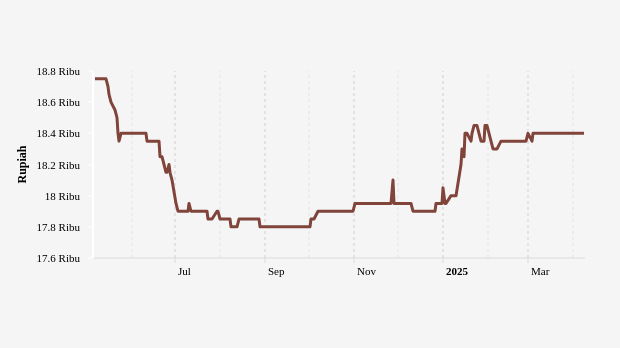 Sedangkan harga gula pasir lokal harian di pasar tradisional dalam tiga bulan terakhir di Jawa Barat telah mengalami kenaikan sebesar 2,51% dari sebelumnya yang tercatat di harga Rp17,95 ribu.