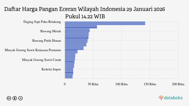 Berikut daftar lengkap harga 16 bahan pangan di Indonesia menurut SP2KP Kemendag 29 Januari 2026 pukul 14.22 WIB.