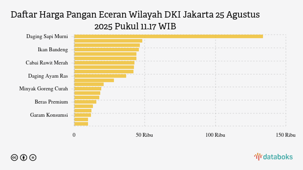 Berikut daftar lengkap harga 21 bahan pangan di DKI Jakarta menurut Bapanas 25 Agustus 2025 pukul 11.17 WIB.