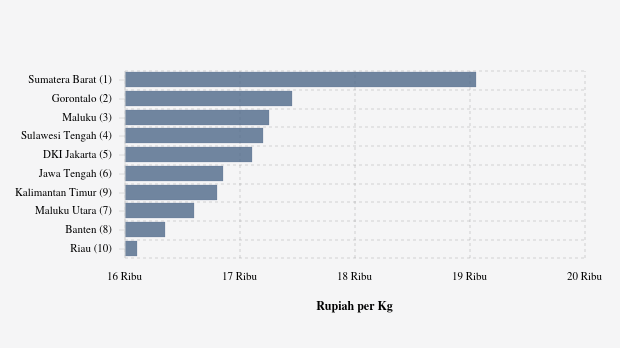 Sementara di pasar modern Gorontalo, harga beras dijual seharga Rp.17.950 per kg dan menjadi yang termahal kedua di dalam negeri.
