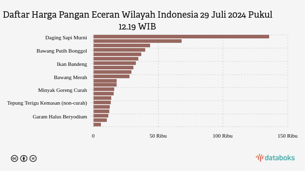 Berikut daftar lengkap harga 21 bahan pangan di Indonesia menurut Bapanas 29 Juli 2024 pukul 12.19 WIB.