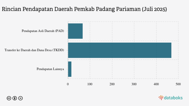 Selama periode Januari 2025 hingga Juli 2025, realisasi Pendapatan Daerah Pemkab Padang Pariaman sebesar Rp550,07 miliar atau setara 37,81% dari anggaran Pendapatan Daerah 2025.