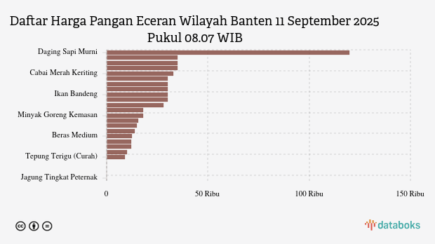 Berikut daftar lengkap harga 25 bahan pangan di Banten menurut Bapanas 11 September 2025 pukul 08.07 WIB.