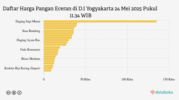 Berikut daftar lengkap harga 23 bahan pangan di D.I Yogyakarta menurut Bapanas 24 Mei 2025 pukul 11.34 WIB.
