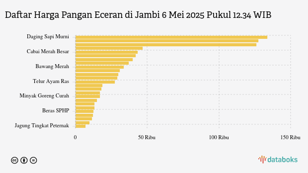 Berikut daftar lengkap harga 25 bahan pangan di Jambi menurut Bapanas 6 Mei 2025 pukul 12.34 WIB.