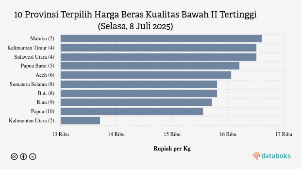 10 Provinsi dengan Harga Beras Kualitas Bawah II Paling Mahal (Selasa, 8 Juli 2025)