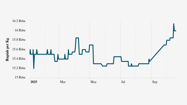 27. Beras Kualitas Super I per Kg Rp16 ribu per kg (naik 4.58%)