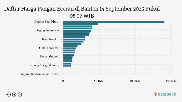 Berikut daftar lengkap harga 25 bahan pangan di Banten menurut Bapanas 14 September 2025 pukul 08.07 WIB.