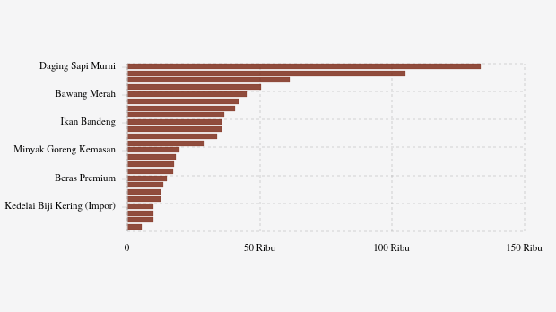 - Daging Sapi Murni: Rp133.281 per kg (naik 0,74%)