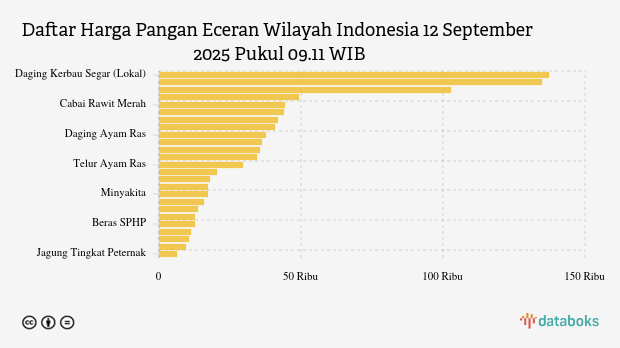 Berikut daftar lengkap harga 25 bahan pangan di Indonesia menurut Bapanas 12 September 2025 pukul 09.11 WIB.