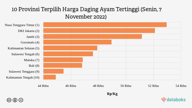 Harga Daging Ayam di Nusa Tenggara Timur Rp 52.950 per Kg (Senin, 7 November 2022)